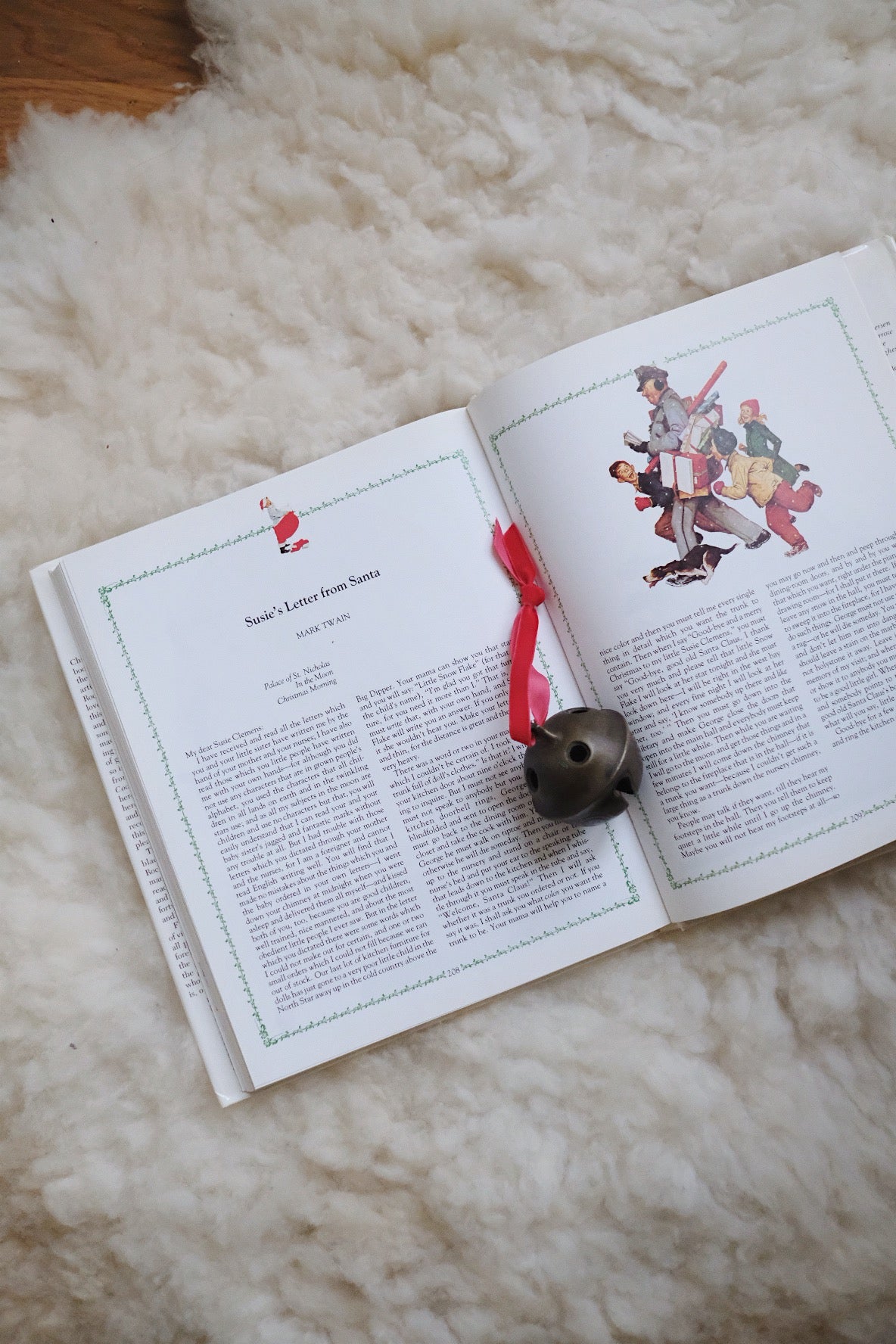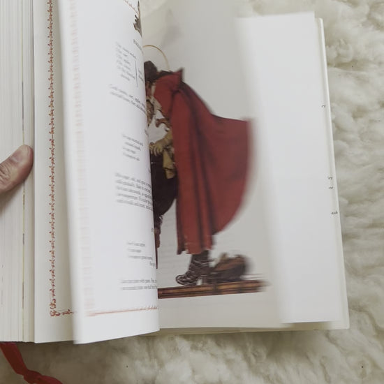 features carols, stories, poems, recollections, and full page colored prints by various notable persons like Shakespeare, Hans Christian Andersen, Louisa May Alcott, Mark Twain, Charles Dickens, Lewis Carroll, and more.